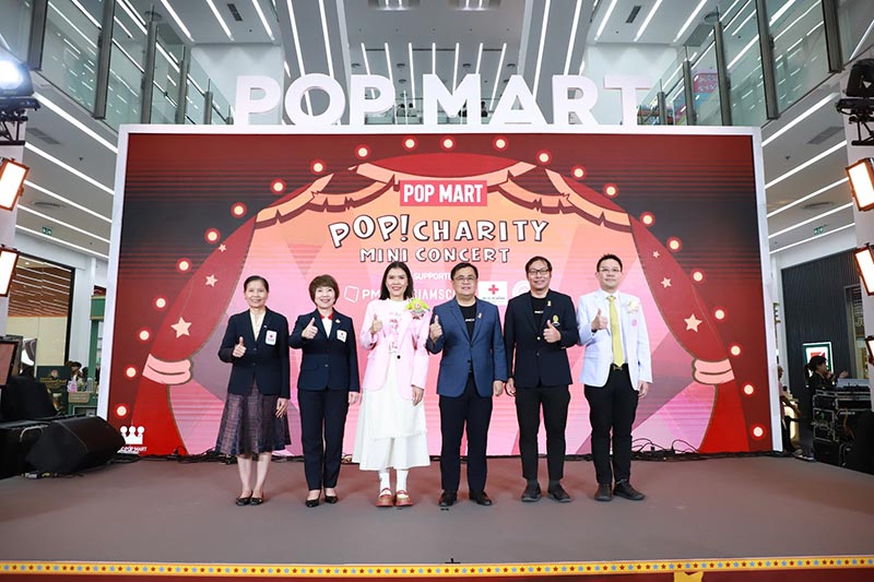 POP CHARITY MINI CONCERT จากศิลปินและไอดอลขวัญใจชาวป๊อปมาร่วมสร้างสีสันบนเวที มาร่วมส่งต่อความสุขพร้อมชวนทุกคนมาทำบุญ โดยบริจาคตั้งแต่ 100 บาทขึ้นไป รับของที่ระลึกสุดพิเศษเป็นกล่องสุ่มจาก POP MART (จำนวนจำกัด)